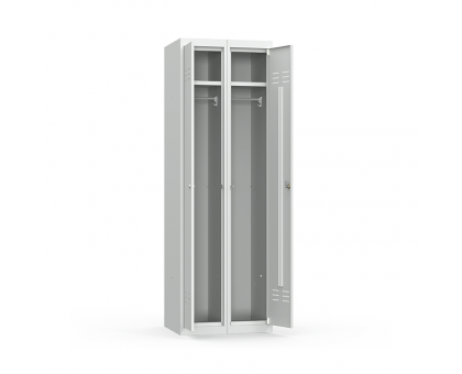 Шкаф металлический для одежды серии ШР-22 L600 предназначен для хранения одежды на предприятиях, в спортивных, образовательных, государственных учреждениях, в строительных бытовках и других местах. Шкаф имеет две секции, каждая из которых оснащается полкой для головных уборов, металлической перекладиной для вешалок и двумя пластиковыми крючками для одежды, проушиной для навесных замков. Размер секций обеспечивает комфортное размещение верхней одежды, в том числе зимней. Конструкция предусматривает возможность установки дополнительной полки для обуви. Двери шкафов сверху и снизу имеют вентиляционные отверстия-жалюзи, оснащаются дополнительными ребрами жесткости, запираются на почтовый ключевой замок повышенной секретности 1:2000.