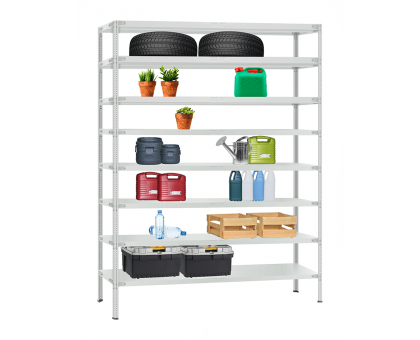 Размеры внешние. мм (ВхШхГ): 2500x 1000x 500 Количество полок: 7 полок (ярусов) Конструкция: Сборно-разборная Цвет: Светло-серый (RAL 7035) Тип покрытия: Порошково-полимерная краска